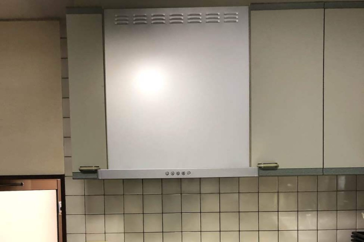 プロペラ換気扇からスリムタイプのレンジフードに交換いたしました。