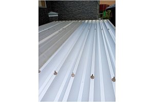 落雪で破損したカーポートの折板(ポリカ)をガルバリウム折板に交換