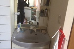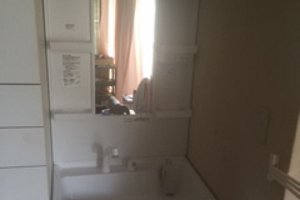 トイレと洗面化粧台の工事で、洗面化粧台は幅が狭かったので、壁を傷つけないように施工する為、慎重に作業しました。