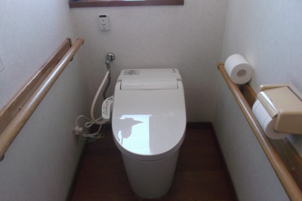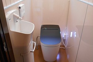 お客様自身が「狭いトイレにできるだけ良い品でリフォームして欲しい」との依頼でした。トイレ本体の新型アラウーノⅡの面材もブラックを、リモコンはホワイトとご希望され納品に時間はかかりましたがお客様の意に沿うように完成させました。間口が750mmだったので手洗いの取付はかなり厳しいと考えていたのですが、お客様の強い要望でドア脇に取り付けることをしました。また壁のタイルが綺麗なので落とさずに施工することになり、さらに壁が左右10mmずつ膨れましたが、なんとか許容の範囲で納めることができました。