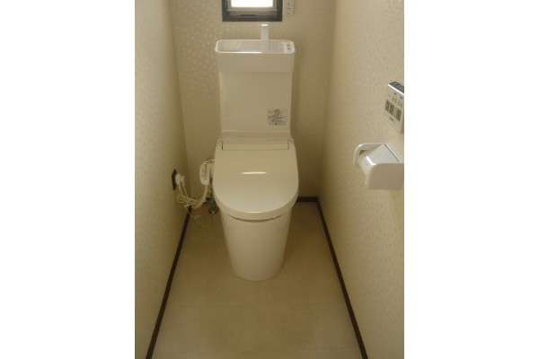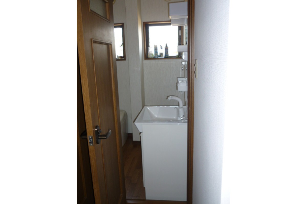 1Fの便器と小便器が2部屋に分かれていたので、それを一つにまとめ洗面化粧台をいれました。トイレ部屋が広くなり解放感がUPしました。