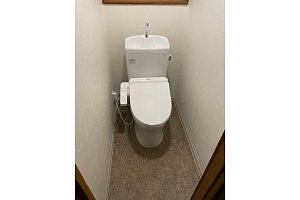 和式トイレから洋式のトイレへの工事で、トイレ取替・壁・クロス・クッションフロア・コンセントを新設しました。