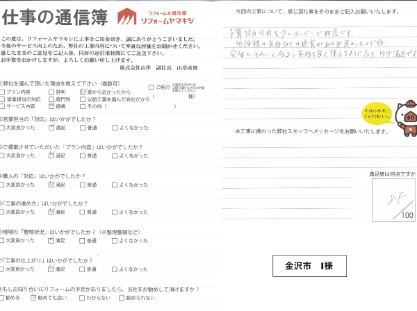 トイレリフォーム I様(金沢市)