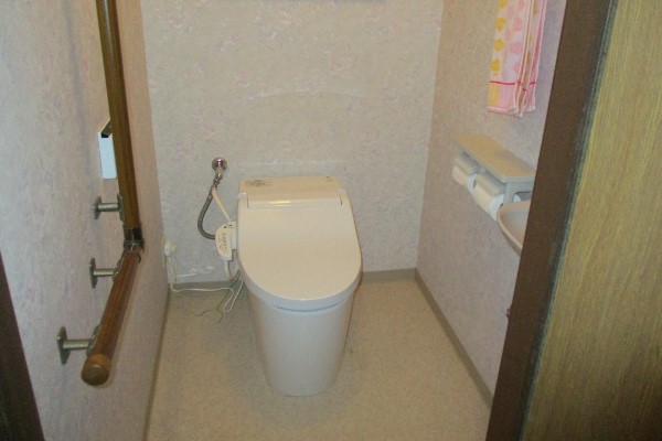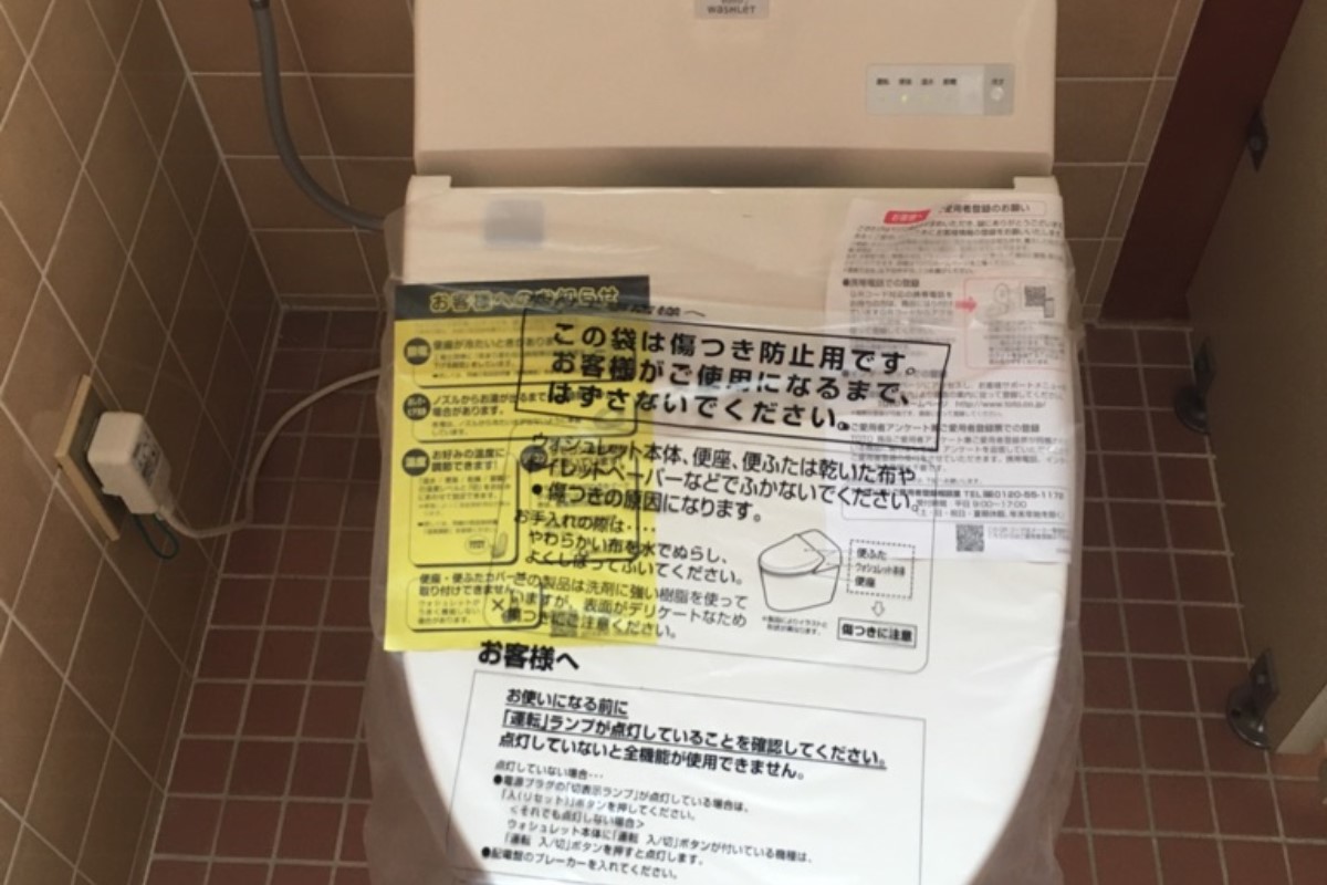 チラシよりお問い合わせいただき、タンクレスの自動便座自動開閉のトイレをご提案。温風乾燥も付いて快適です。