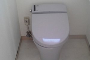 既存のトイレが古くなったとの事で交換工事。脱臭機能付きの便座をご提案