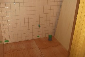 既存トイレ解体撤去工事・タイル内装から内装クロス張り工事・床下地大工工事・クロス張工事・床/クッションフロア張り工事。1F/2Fトイレ入替工事。