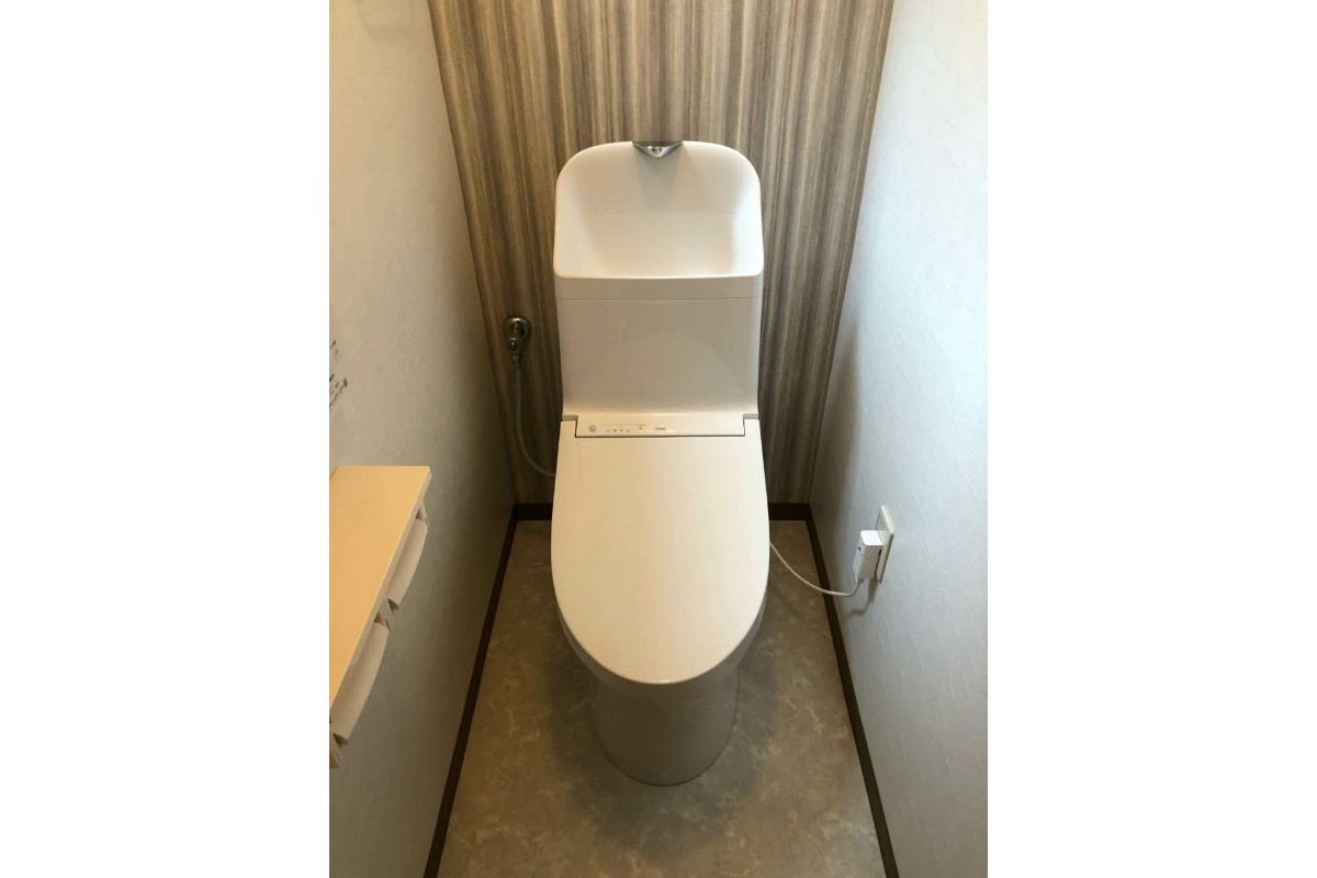 ご高齢の方がご使用いただくとの事でしたので便座の横ではなく壁付けリモコンタイプの物をおススメし、内装に合わせて紙巻き器の交換も致しました。