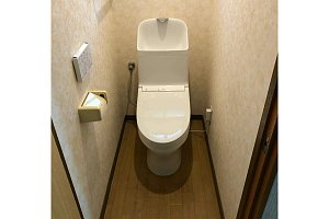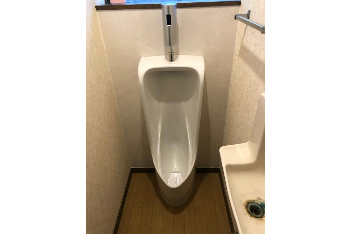 洋式トイレが設置から30年ほど経って古くなってきたので交換したいとご依頼いただきました。小便器もサイズが小さいので大きいものに変えたいとご相談いただきましたので、大きいタイプの物に変更。自動洗浄フラッシュバルブも設置いたしました。