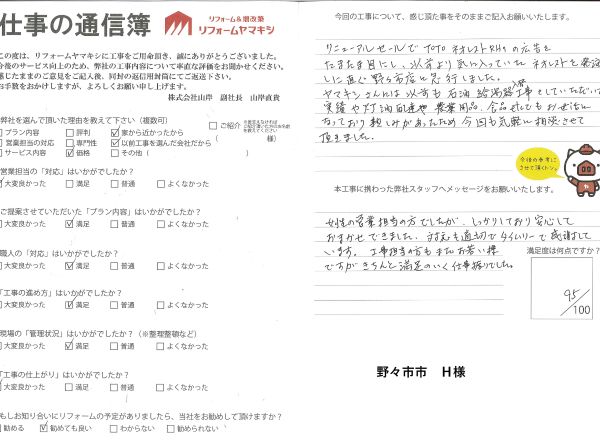 トイレリフォーム H様(野々市市)