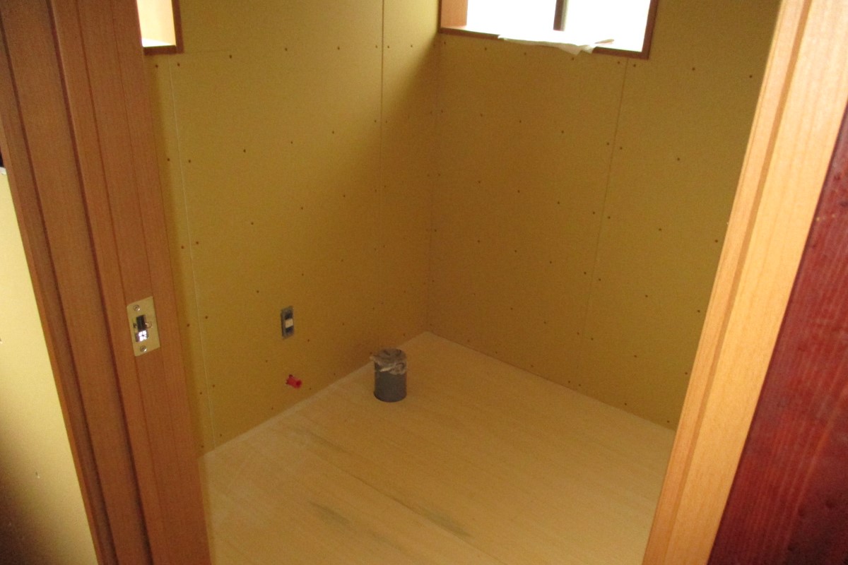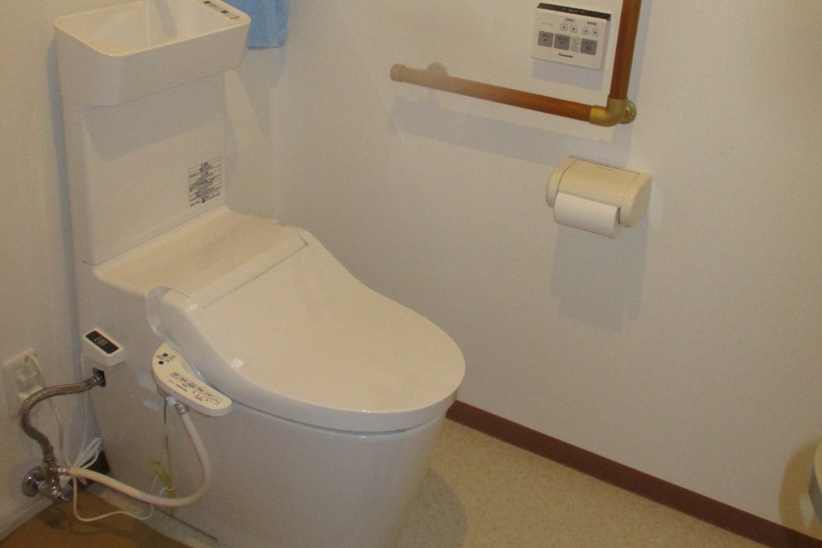 | トイレ:パナソニック アラウーノV手洗い付 小便器:リクシル U331RM 床:クッションフロア 壁・天井:ビニールクロス |