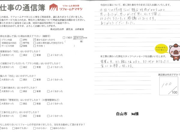 トイレリフォーム M様(白山市)