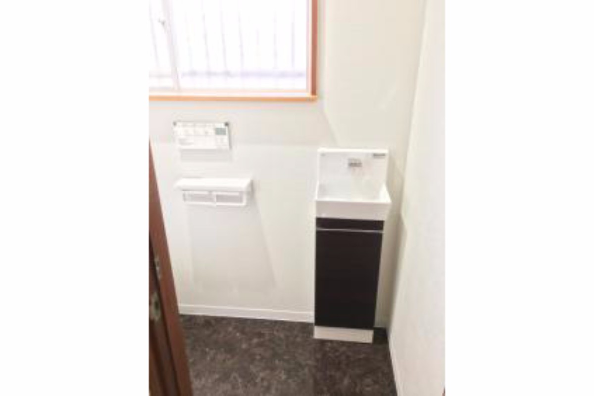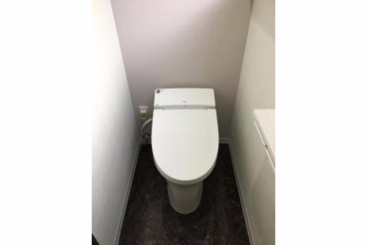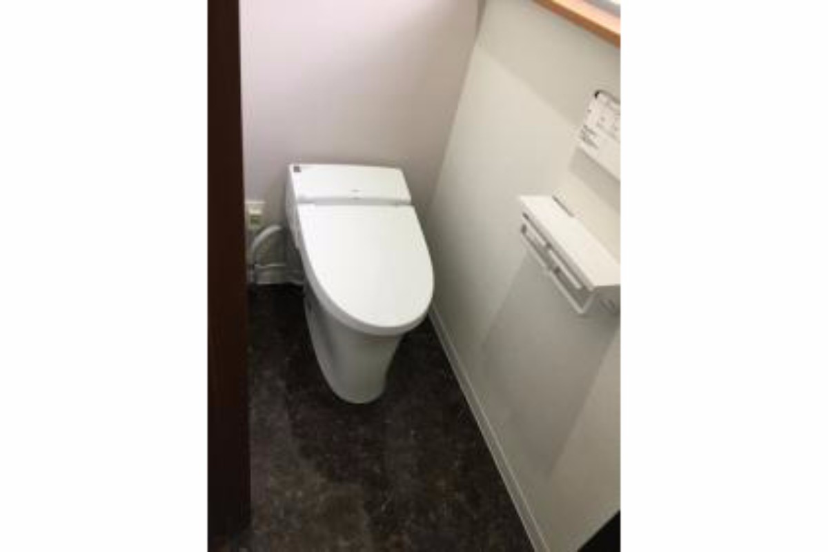お客様の要望により床材をハピアフロア トイレタフを使っての施工となりました。水に強く、アンモニアがしみ込みにくいトイレ専用の床材です。