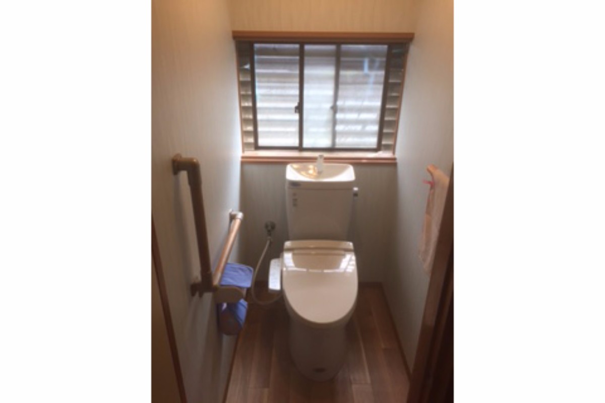 色々な方がよく使われる為、綺麗なトイレにしたいとの要望があり、ご年配の方が良く使うと聞いたので手すりも付けさせて頂きました。