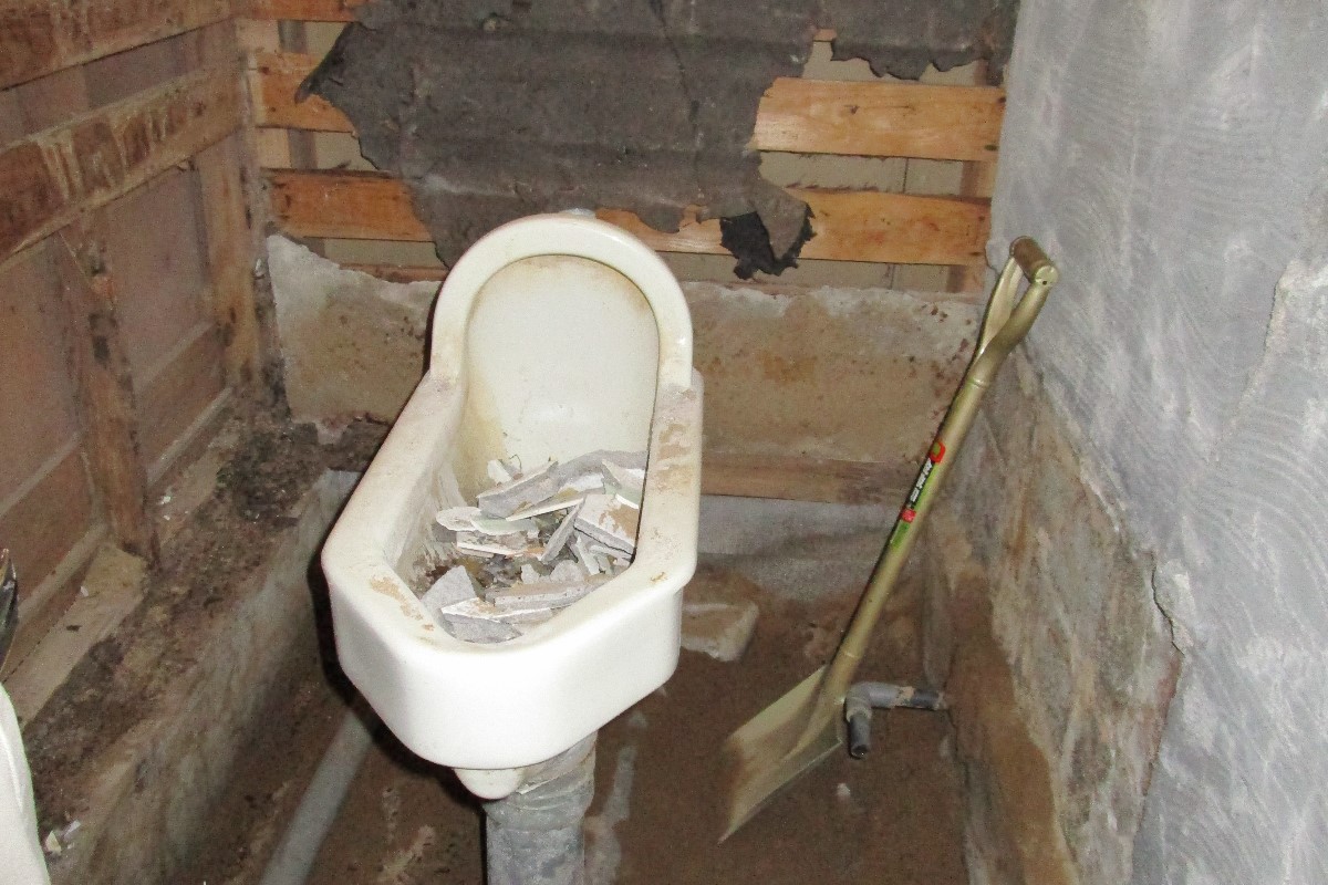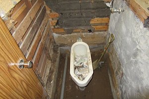 和式トイレ解体後木材の腐食部分の改装。木下地を行いトイレ設置。