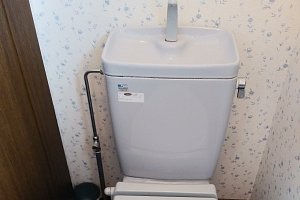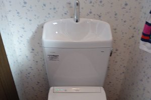 既存のトイレでは水を流す時にレバーを手動で流していましたが、交換の時にリモコンで水を流せるように仕様を変更しました。