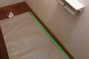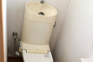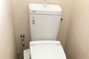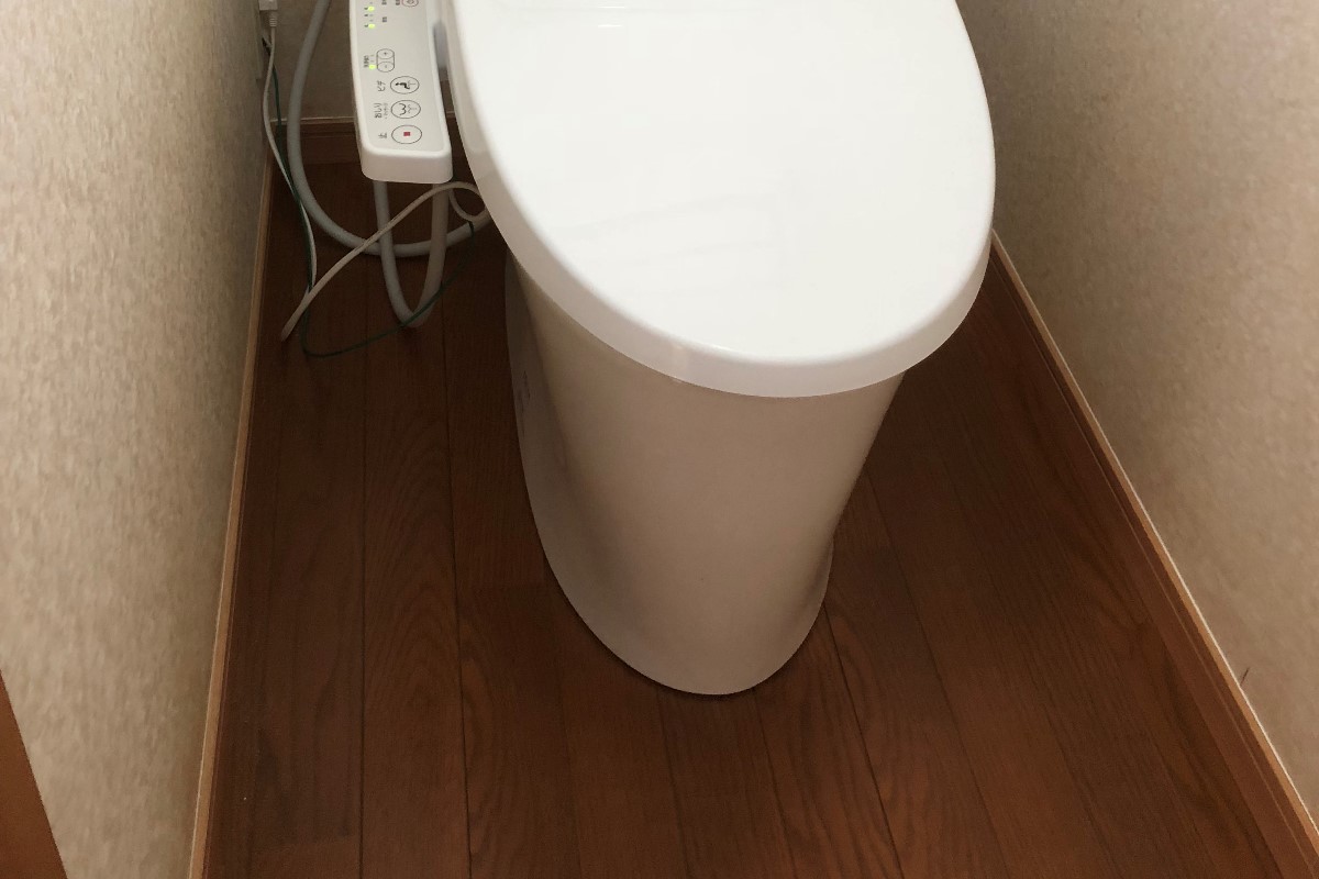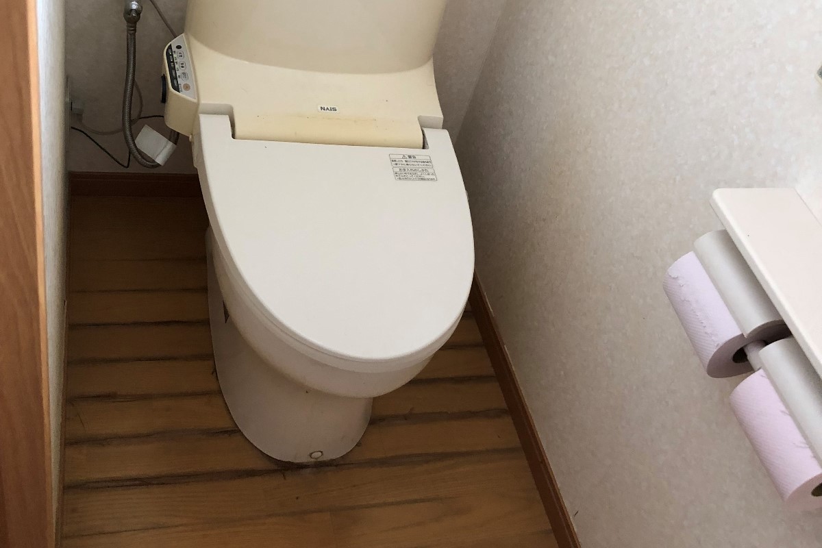 お客様より、ウォシュレットから水漏れがするのと、水漏れでフロアが傷んで剥がれているので交換して欲しいとご要望がありました。