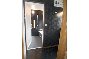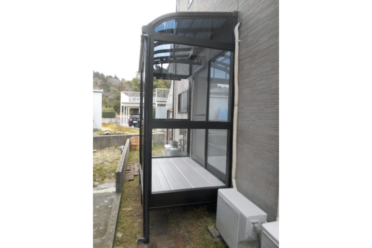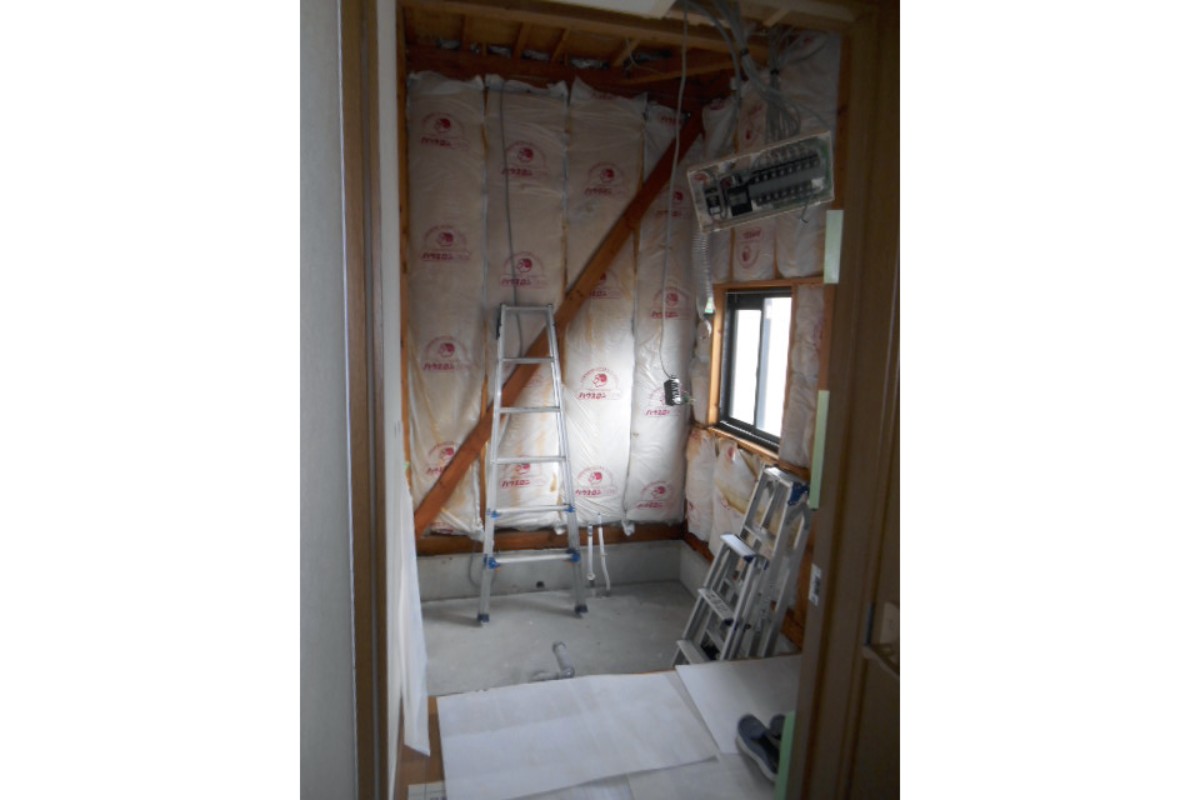 既存お風呂が0.75坪で狭いため、システムバスを1坪に拡張して、ゆったりお風呂に入りたいとのご要望でした。そのため、脱衣場スペースを狭め、お風呂を拡張しました。その際、洗濯機を置くスペースが無くなる為サンルームを作り、そこに洗濯機を置く事となりました。