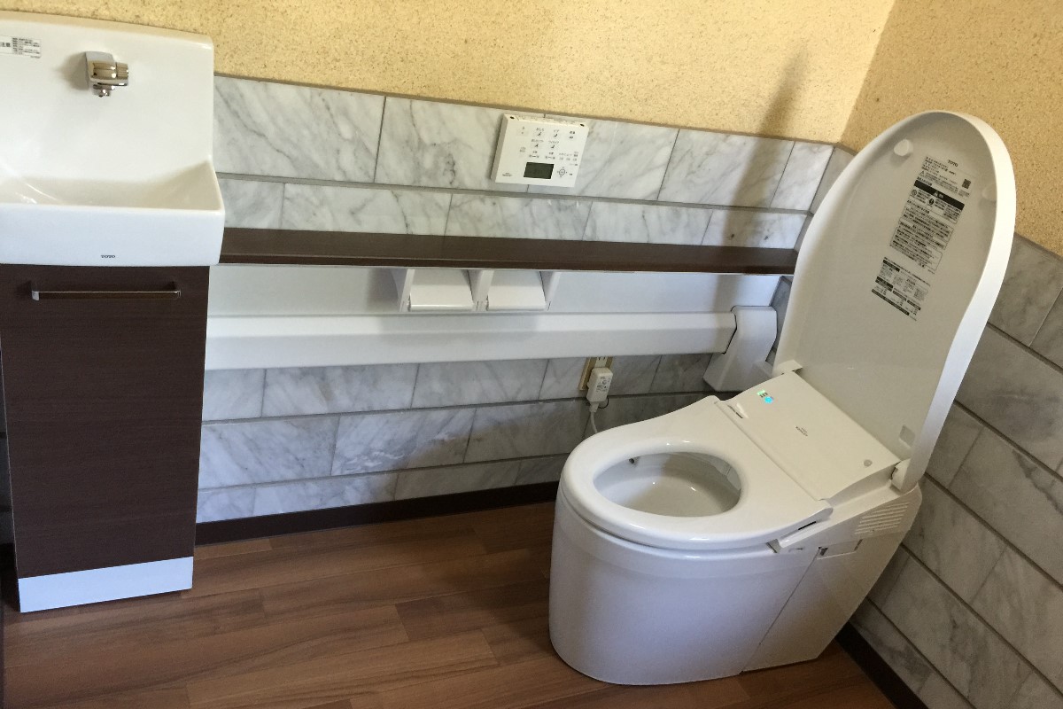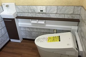 "お客様のご希望で、トイレの大理石の壁を残してリフォームしました。